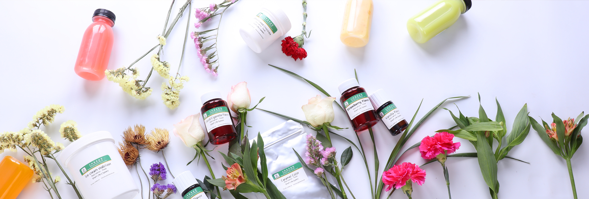 食用香精 、植物提取物、 食用色素、 巧克力及咖啡、 茶系列、 胶体与稳定剂 、其他添加剂